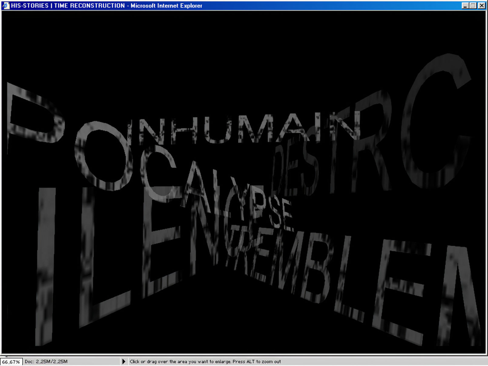 The navigation is labyrinthine. Thousands of screens cannot all be seen, the narration is uncertain passing from one era to another through the incessant dialogue between a man and a woman.